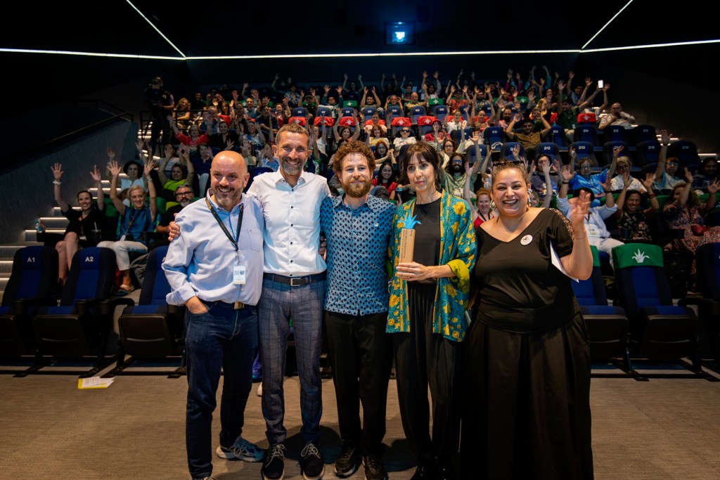 Presidente European Film Promotion, Jo Mühlberger (FP), el actor Álvaro Cervantes, la directora Eva Libertad y Estrella Araiza (directora del Festival Internacional de Cine de Guadalajara, FICG