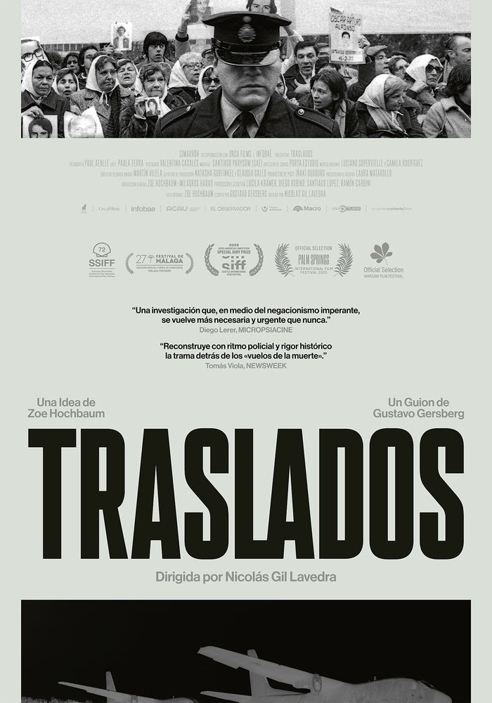 TRASLADOS, el documental que reconstruye con rigor y sensibilidad uno de los crímenes más atroces de la última dictadura cívico-militar argentina (1976-1983) se estrena en cines el próximo viernes 27 de junio. Dirigido por Nicolás Gil Lavedra y basado en una idea original de la actriz y productora Zoe Hochbaum, TRASLADOS ofrece una mirada profunda y conmovedora sobre los llamados vuelos de la muerte, una práctica sistemática de exterminio en la que detenidos-desaparecidos eran arrojados vivos al mar o al Río de la Plata desde aviones militares.