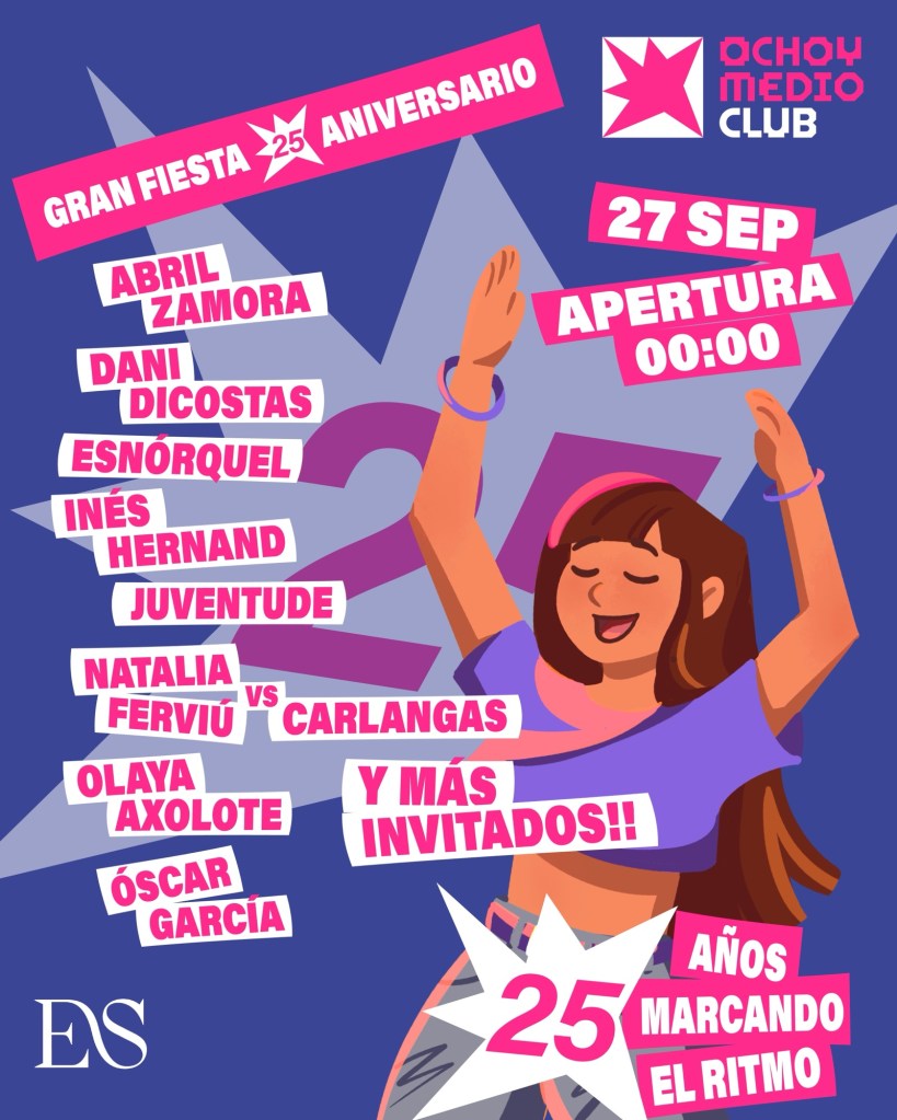 El próximo 27 de septiembre el Ochoymediocelebra 25 años marcando el ritmo de la noche madrileña con un evento sin precedentes en el emblemático Teatro Eslava. Una jornada doble de música, fiesta y nostalgia que reunirá los DJ sets y live shows más míticos de su historia.