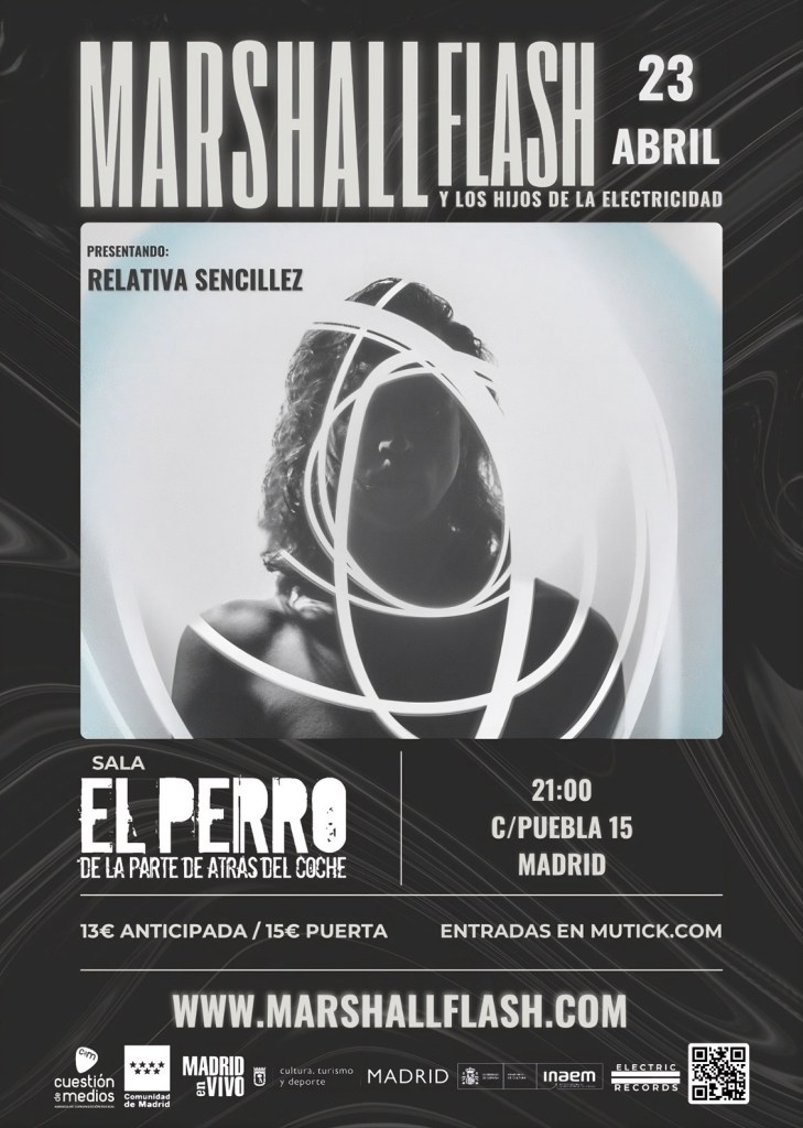 Sobre el escenario, Marshall Flash estará acompañado por José David Blanco, César Romero, Fran Hita y Juan M. Sáez, “los hijos de la electricidad”: amigos y grandes músicos que dan forma a un directo potente y vibrante. Juntos presentarán en vivo Relativa Sencillez el próximo jueves 23 de abril, en una cita que promete intensidad, conexión y una descarga sonora sin concesiones.