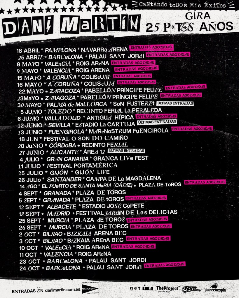 Tras comenzar la gira en Madrid con el récord histórico de agotar diez fechas consecutivas en el Movistar Arena a finales del pasado año, y tras su paso por México y París y Londres, el artista madrileño continúa su GIRA 25 P*T*S AÑOS por los principales recintos de la geografía española durante todo el 2026. En varios de ellos, además, ha colgado el cartel de “Entradas agotadas” con meses de antelación. De hecho, hay ciudades en las que la gran demanda ha derivado en habilitar segundas, terceras y hasta cuartas fechas superando ya las 450.000 entradas vendidas.